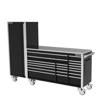 Modular 72 In. W 10-Drawer Black Mobile Workbench Cabinet with 8-Drawer Top Chest and 20 In. Side Locker