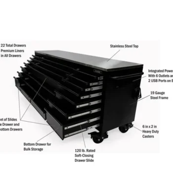 Heavy-Duty 52 In. 15-Drawer Matte Black Tool Chest Combo