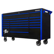 DX Series 72 In. 17-Drawer Roller Cabinet Tool Chest with Mag Wheels in Black with Blue Drawer Pulls